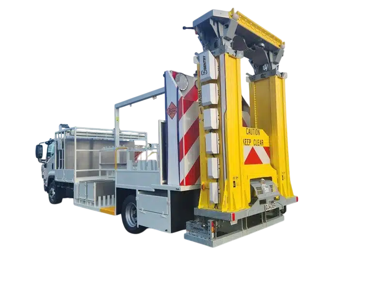 When vehicles collide with trucks, the TMA truck mounted attenuator absorbs the impact energy and causes the rear-end vehicle to bounce back, minimizing damage to the truck and the vehicle as much as possible and protecting the contents of the truck as well as individuals or vehicles in front of the truck.