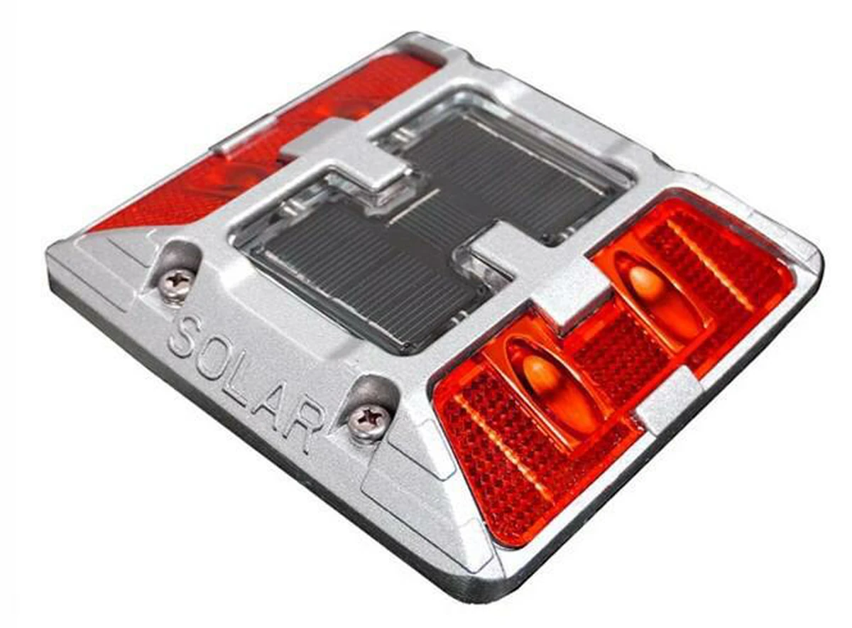 Solar studs were developed by integrating a solar cell panel into the upper part of the solar stud, as well as a protected electrical circuit battery underneath the panel.