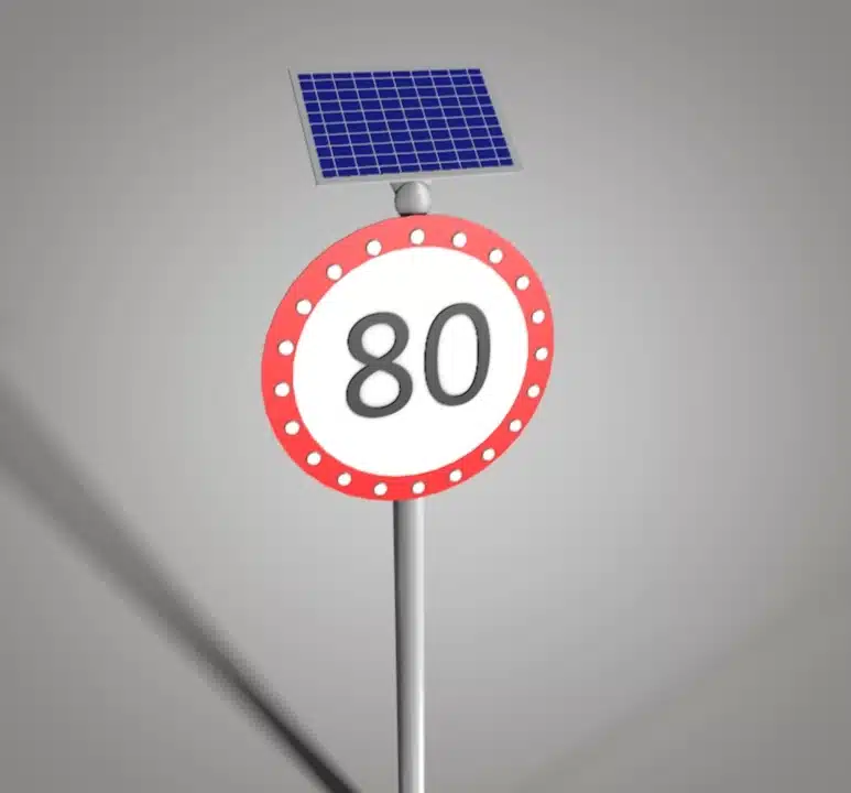 • Solar powered traffic signs include all sizes and shapes of warning signs and regulatory signs, like a solar speed limit sign.